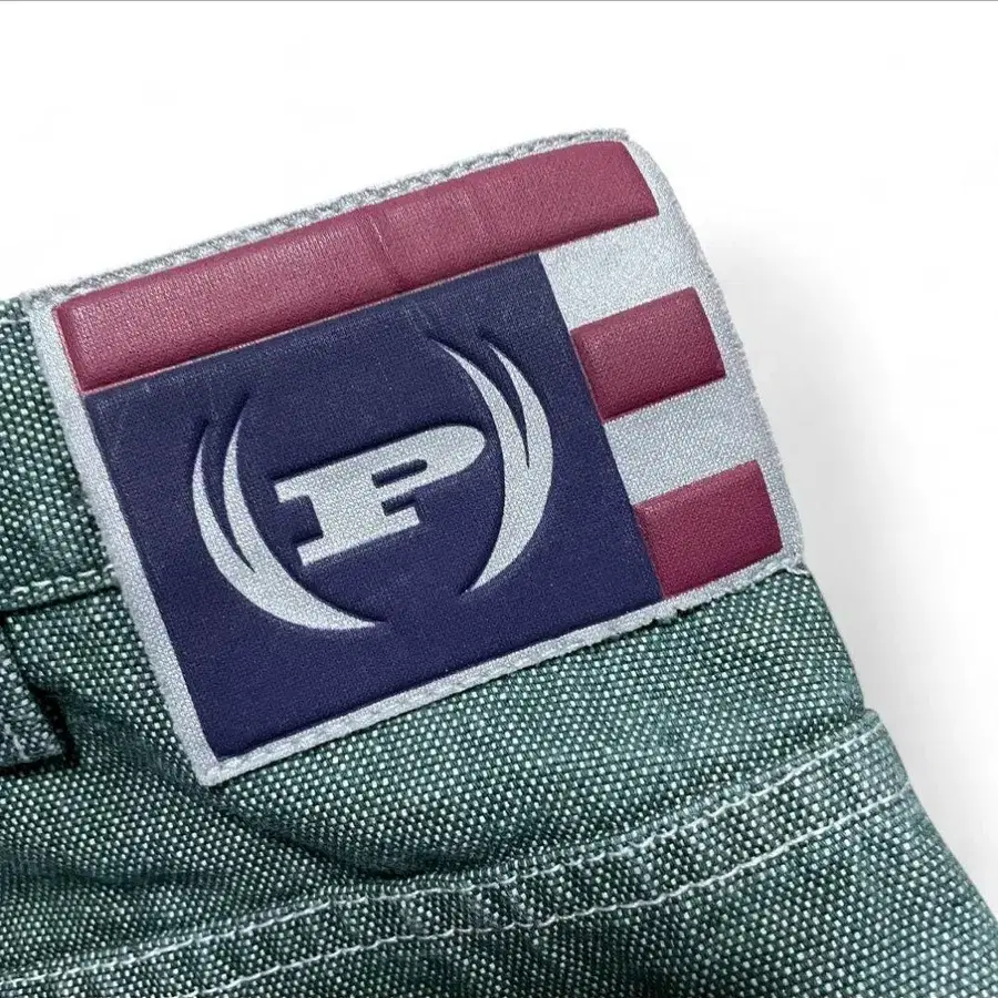 팻팜 배기 데님 카고 팬츠 스트릿 w38 b계 자수 컬러 청바지