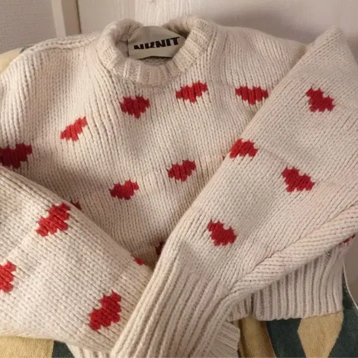 NKNIT 니트 쇼트 패턴 니트 아이보리