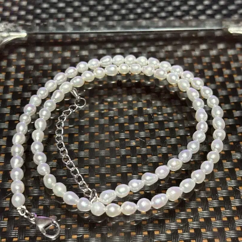 담수 진주입니다. 2줄입니다! 사이즈 약 4.3mm, 길이 약 47mm. - 소재: 담수 진주 - 색상: 화이트 - 스타일: 롱 목걸이 - 클로징: 카니칸식 - 모양: 티어드롭형 반품, 교환, 환불은 불가합니다. 방문해 주셔서 감사합니다.