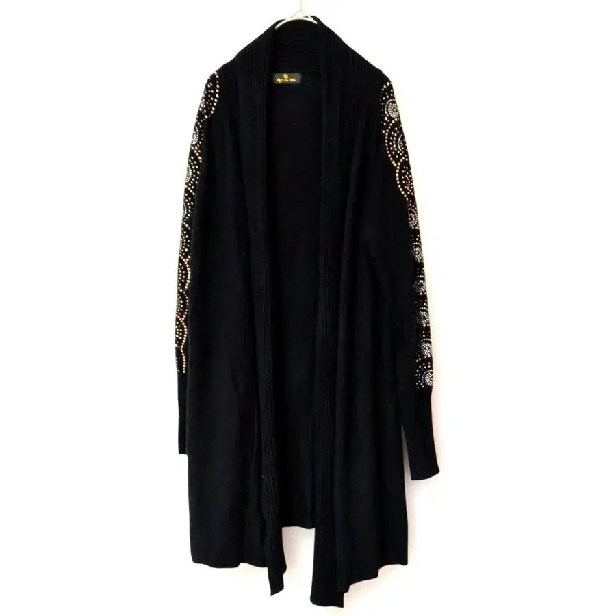 어깨부터 소매까지 비쥬 장식이 들어간 블랙 오픈 프론트 가디건 ♡
