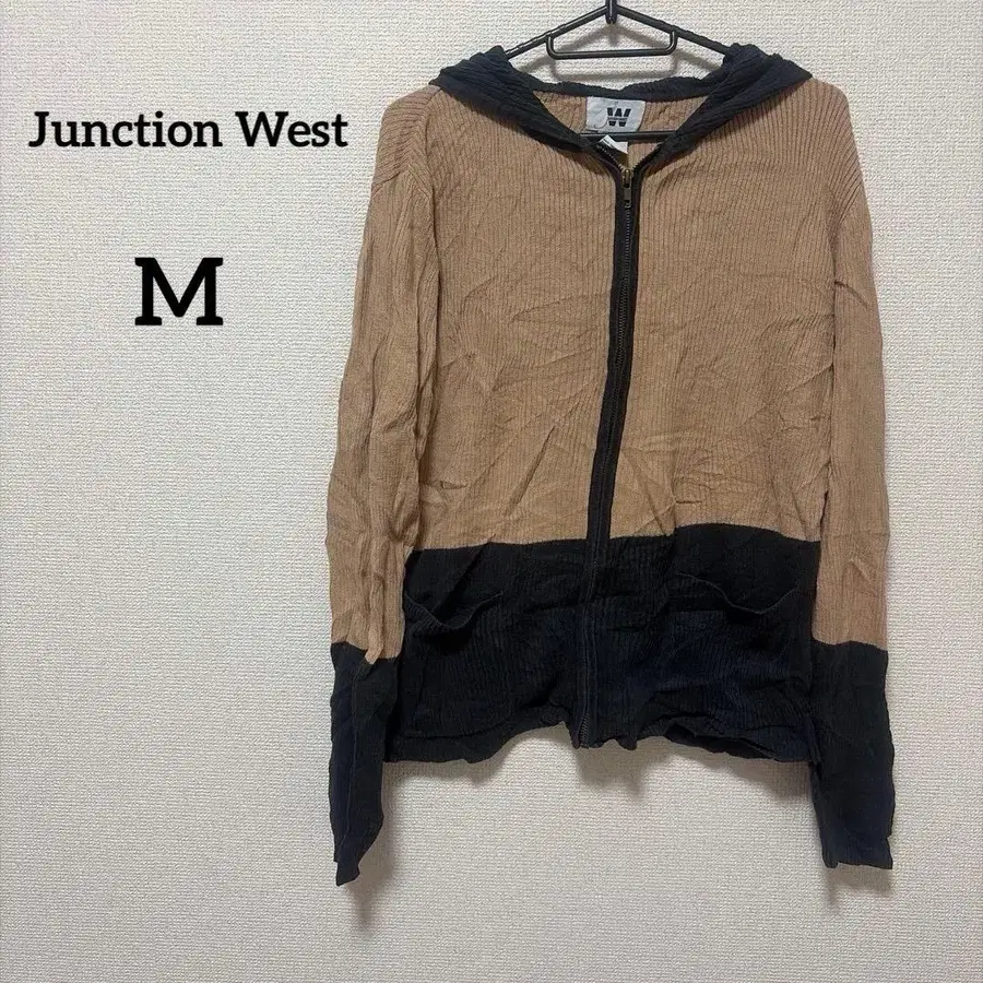 자동 번역되었어요. 원문보기후드 부착형 베이지 및 블랙 가디건, M 사이즈, 라미와 코튼 혼합 소재.