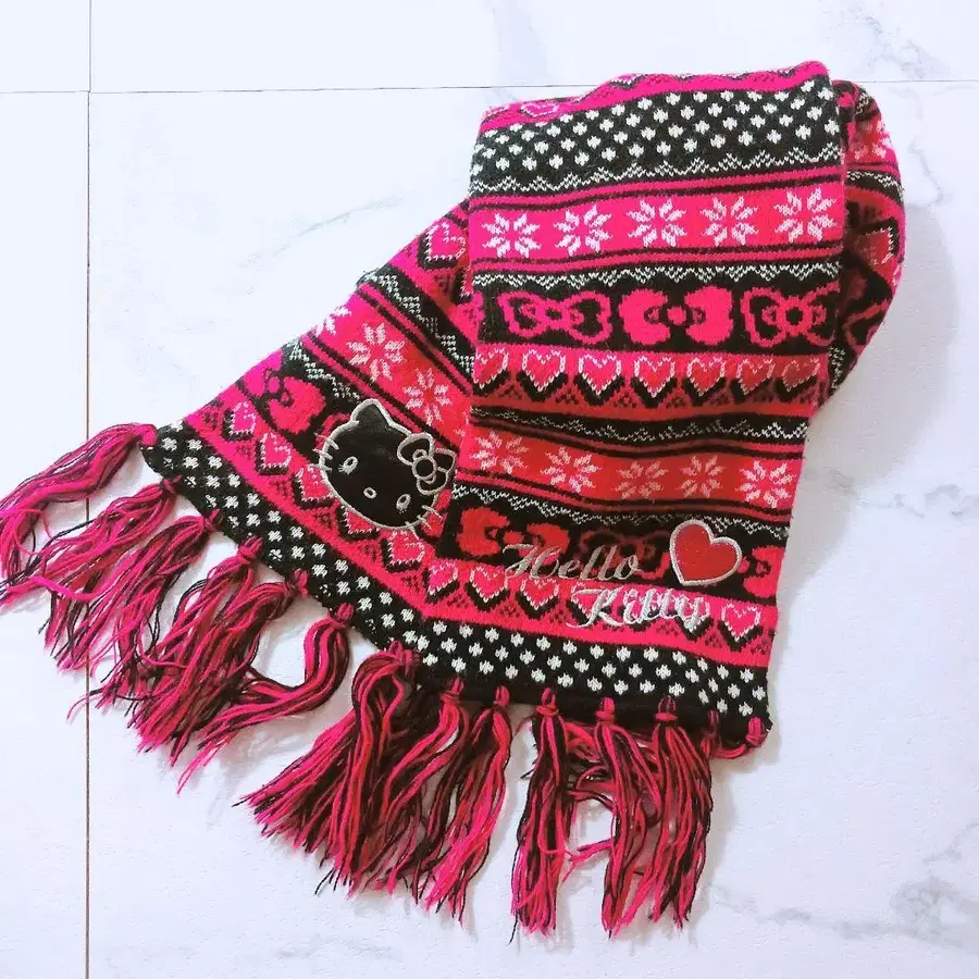키티 일본제 머플러 스톨 리본 라메 로고 자수 헤이세이 레트로