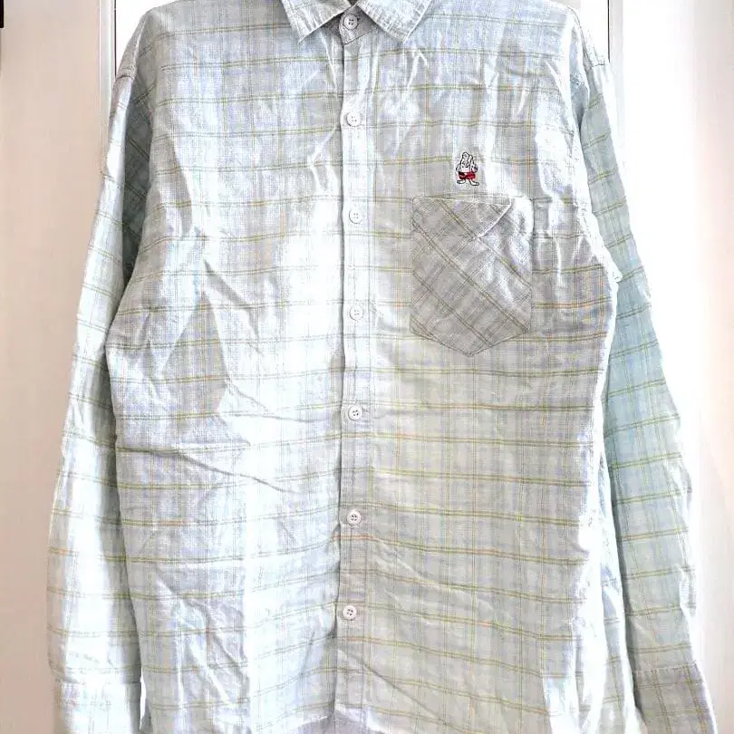 스카이블루와 그린 체크 무늬의 긴팔 셔츠, 포켓 부착으로 캐주얼에 최적입니다.