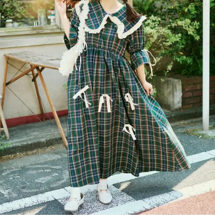 kutir 멀티웨이 빅 옷깃 체크 리본 원피스