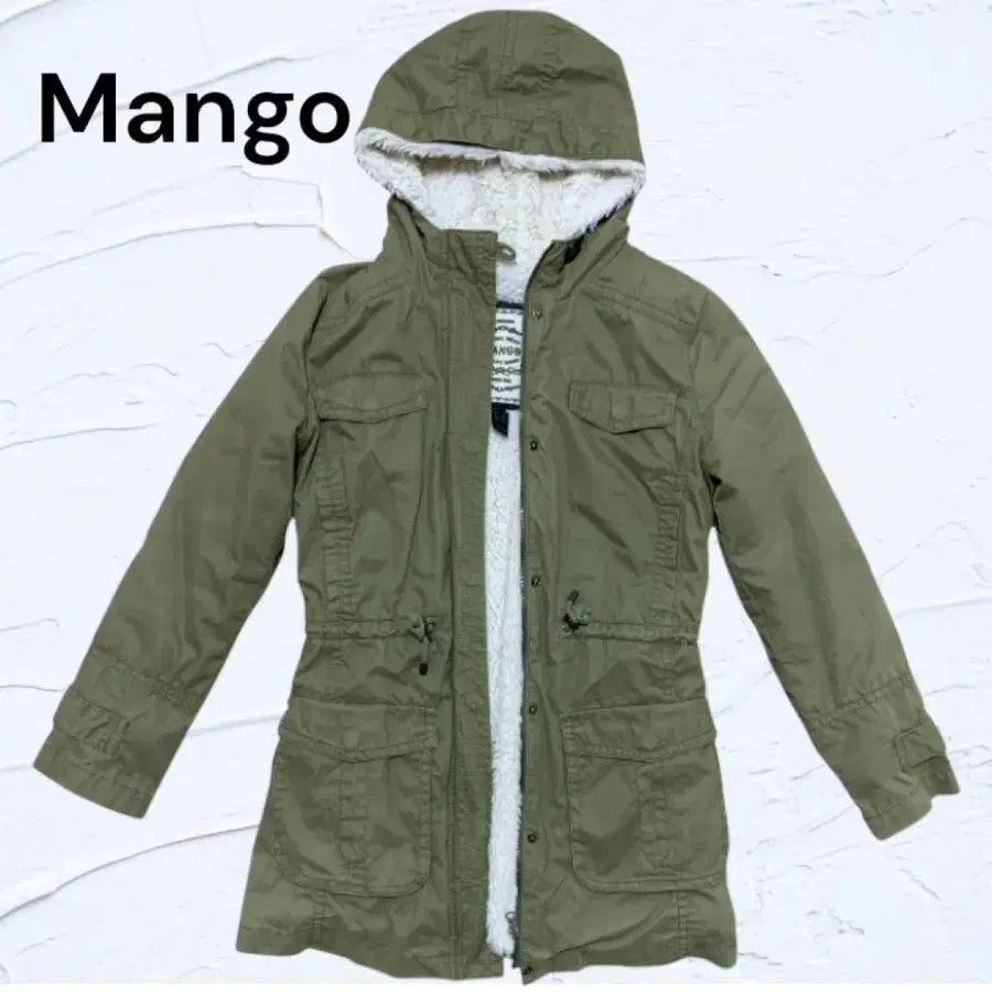 Mango 보아 안감 모즈 코트 후드 부착 카키