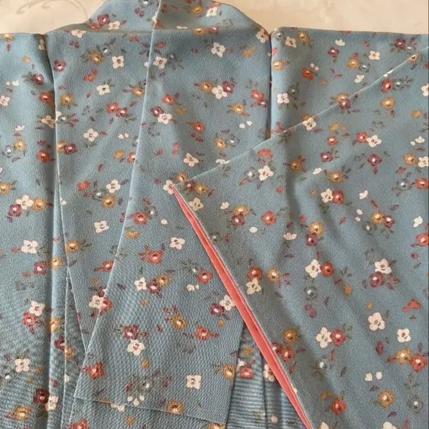 코몬 기모노 순수 실크 이중 기모노 스카이블루 미니 꽃무늬 기장 153