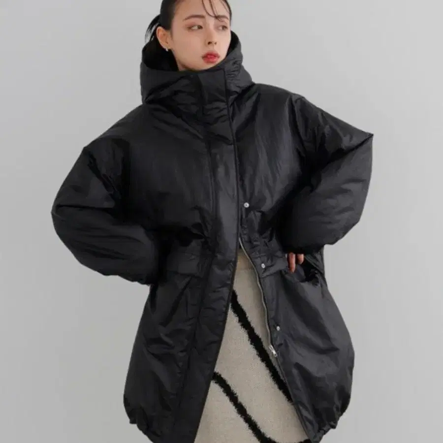 [ LIAN ] 리안 충전솜 후디 코트 블랙