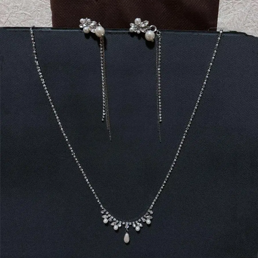 탑에 드롭 진주를 포인트로 한 비즈 목걸이입니다.