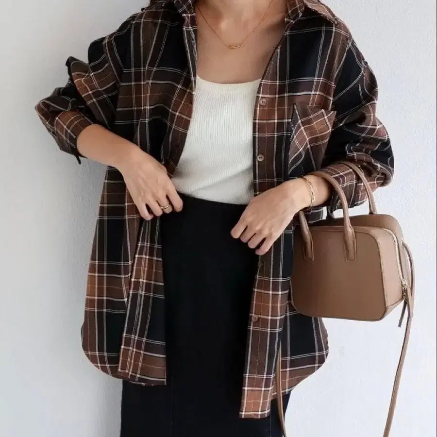 • plage 맨즈라이크 오버 깅엄 체크 셔츠
