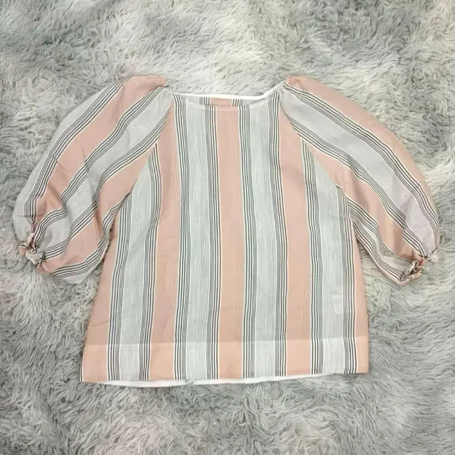 INED 여성용 블라우스 오부 소매 S 퍼프 슬리브 스트라이프 컬러풀