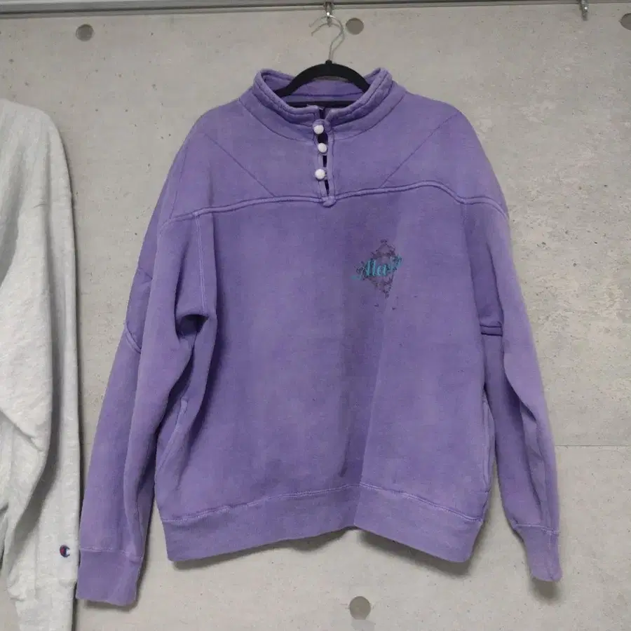 Alaska 자수 보라색 하프 지퍼 트레이닝복