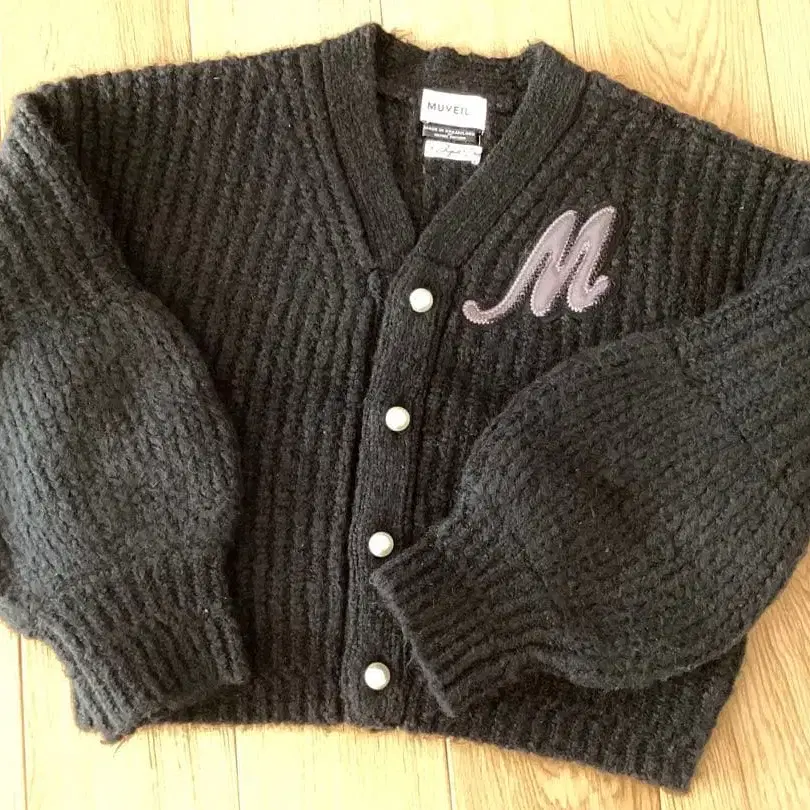 MUVEIL 펄 버튼 블랙 가디건