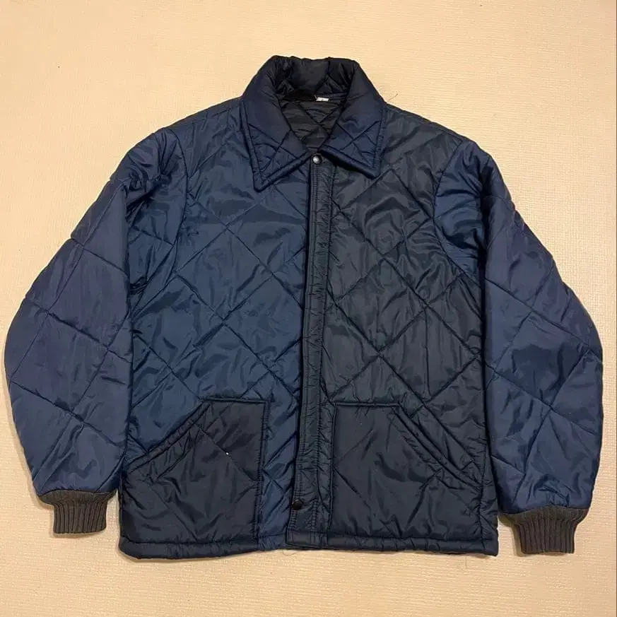 다이아몬드형 퀼팅에 심플한 카라 부착 디자인으로, 당시 워크웨어다운 투박함과 실용성을 겸비한 한 벌입니다.