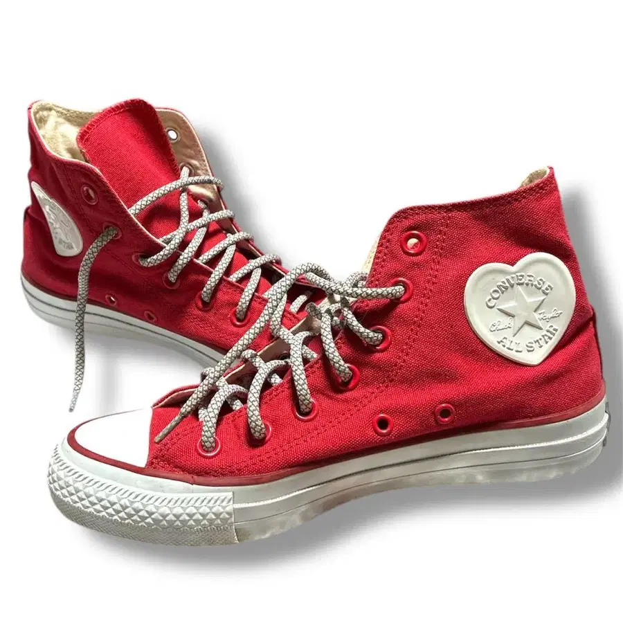 테이프 라인과 힐 라벨 로고에는 하트 모티브에 맞춘 레드 컬러를 악센트로 더했습니다.
