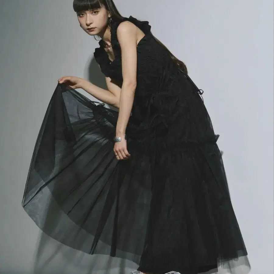 가슴 밑 부분부터는 시스루로 되어 있어, 안에 스커트나 데님 등을 착용하여 다양한 코디를 즐길 수 있는 멋진 원피스입니다.