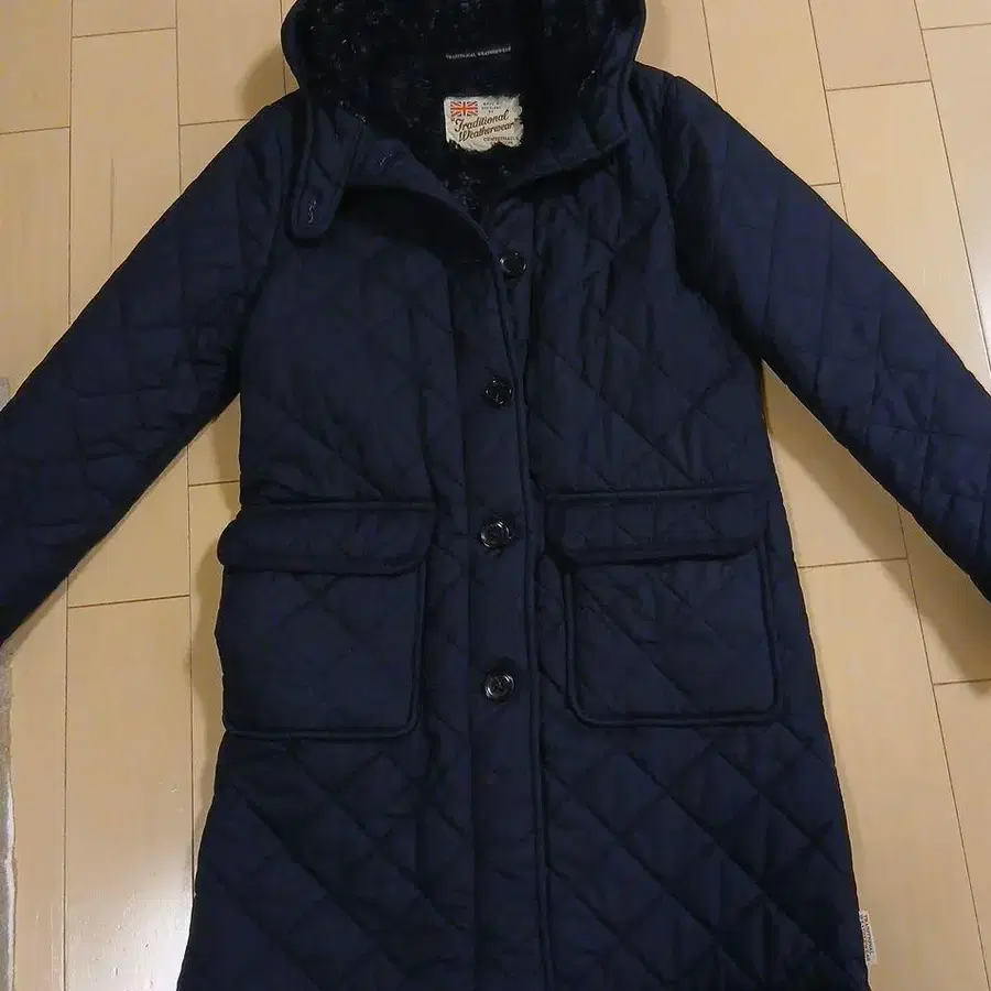 자동 번역되었어요. 원문보기네이비 퀼팅 자켓, 스코틀랜드제, 앞면 포켓 부착.
