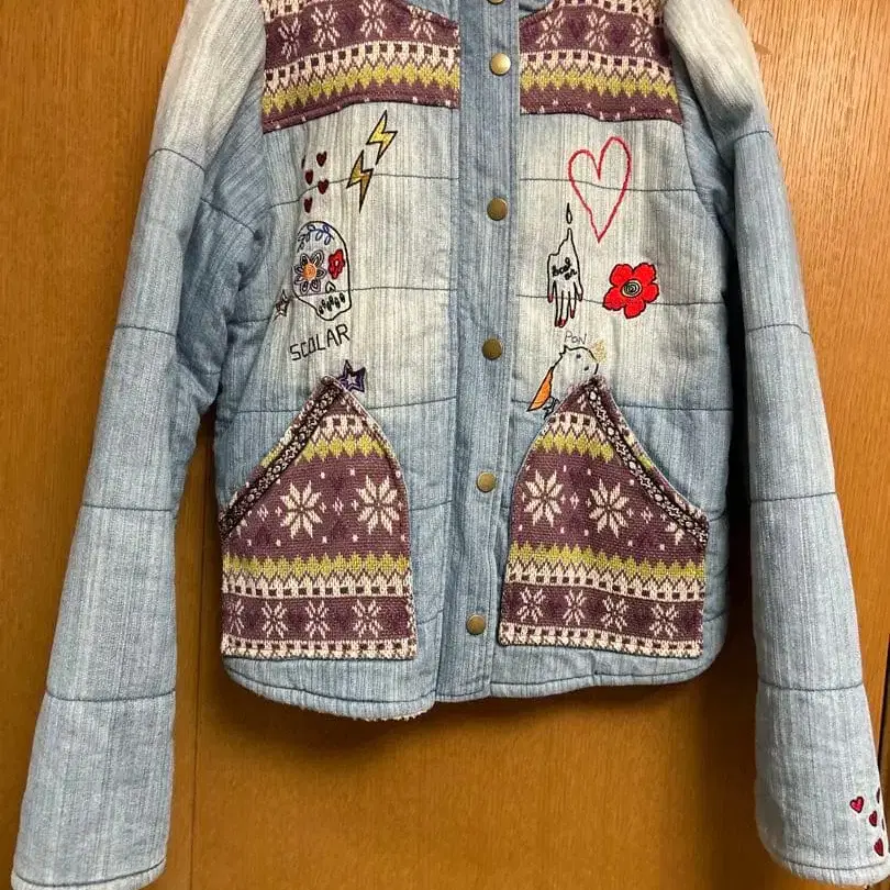 스칼라 구제 의류 개성 데님 자수 보아 점퍼