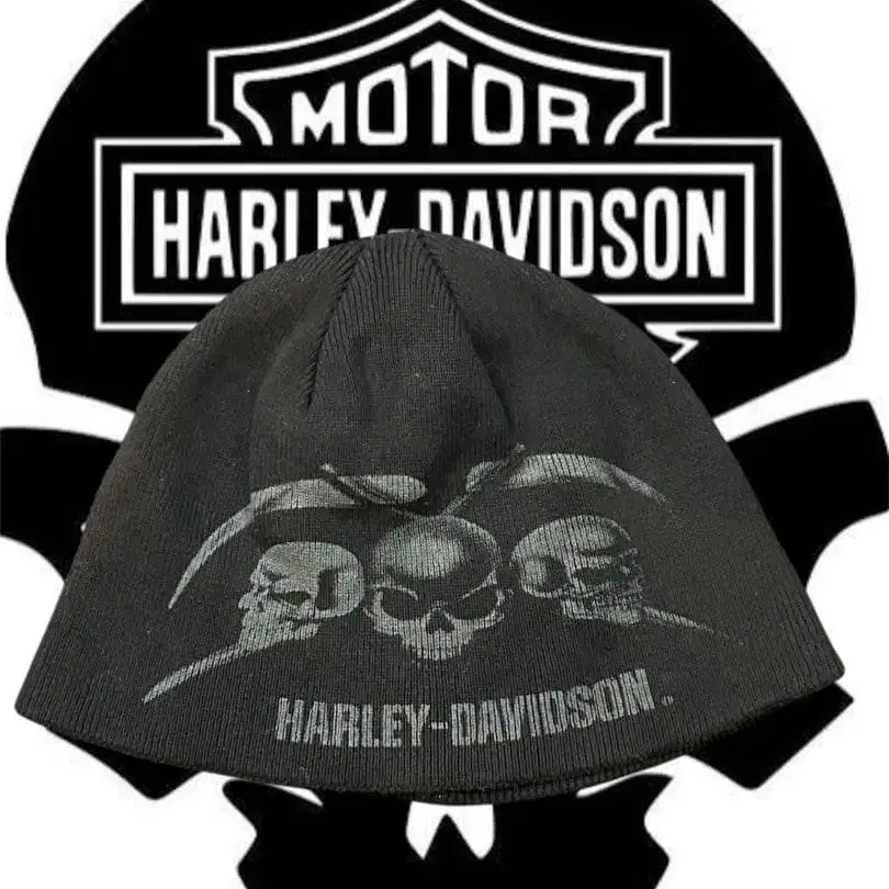 90s 할리 데이비슨 스컬 디자인 니트 모자
