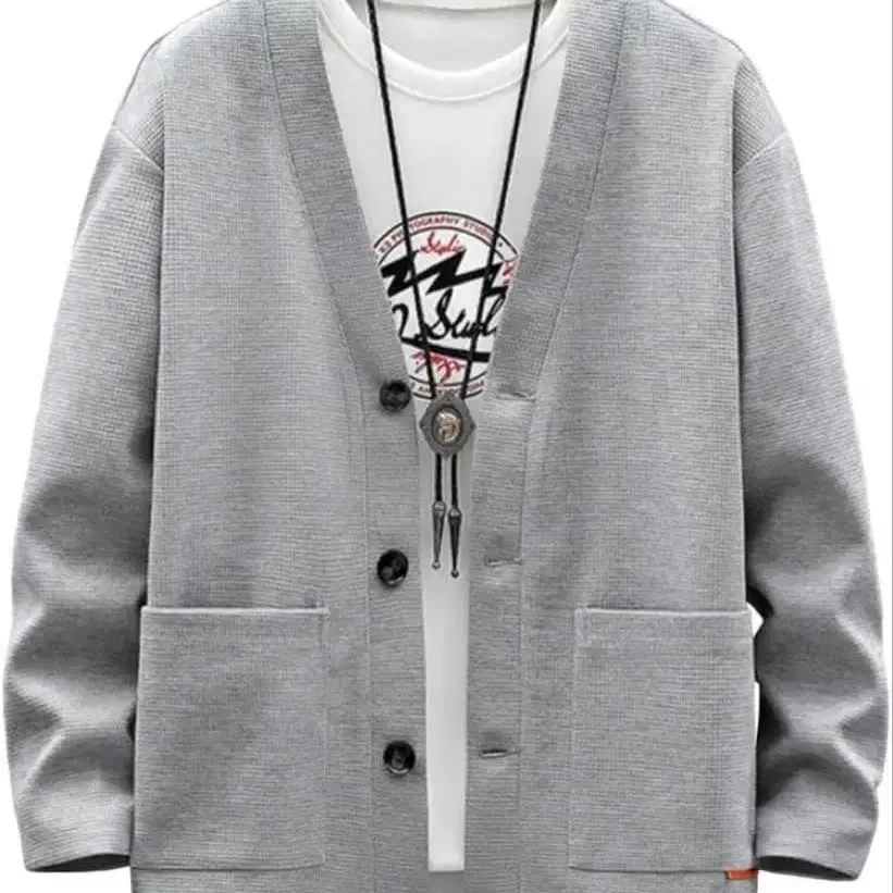 캐주얼한 느낌의 두 개의 큰 포켓이 설치되어 있어 핸드폰이나 잡화를 넣을 수도 있습니다. 어떤 스타일링에도 멋을 더해주는 남성용 가디건입니다.