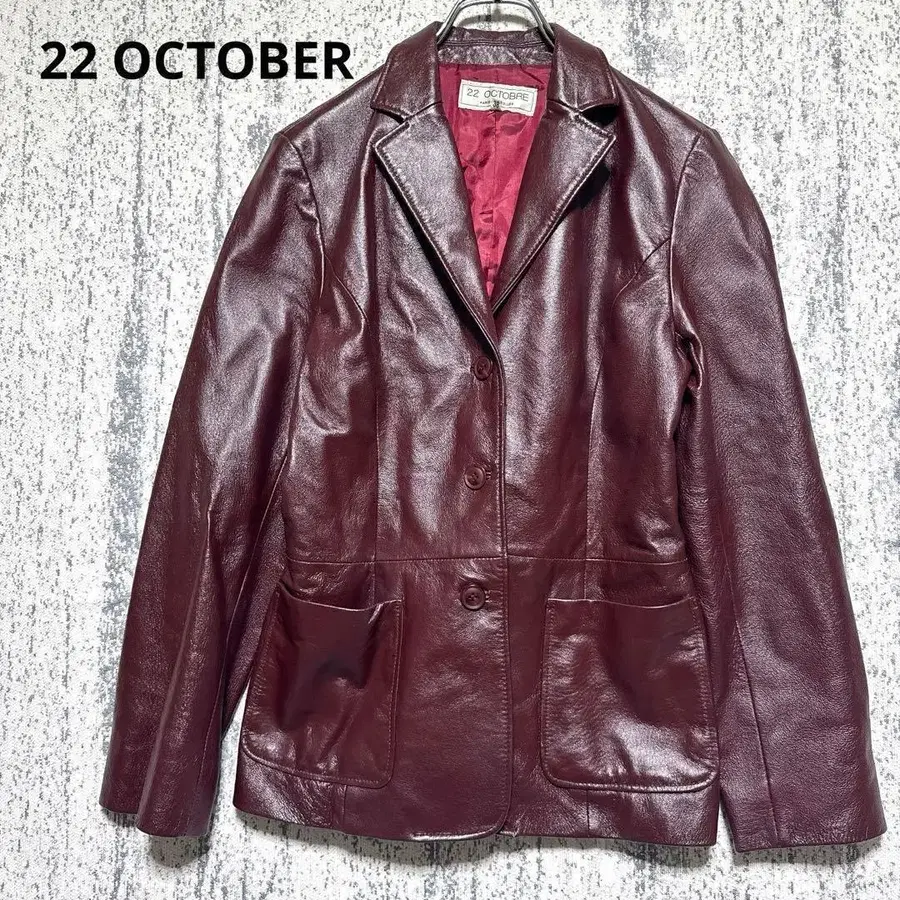 자동 번역되었어요. 원문보기버건디 색상의 가죽 자켓, 더블 버튼과 포켓이 있습니다.