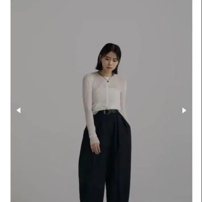 허리는 루프가 달린 사양으로, 벨트로 포인트를 준 시크한 코디나 같은 소재의 slit sleeve tailored jacket과의 셋업 스타일도 추천합니다.