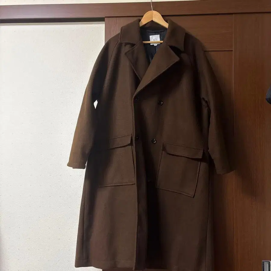 브라운 더블 브레스트 체스터 코트 L