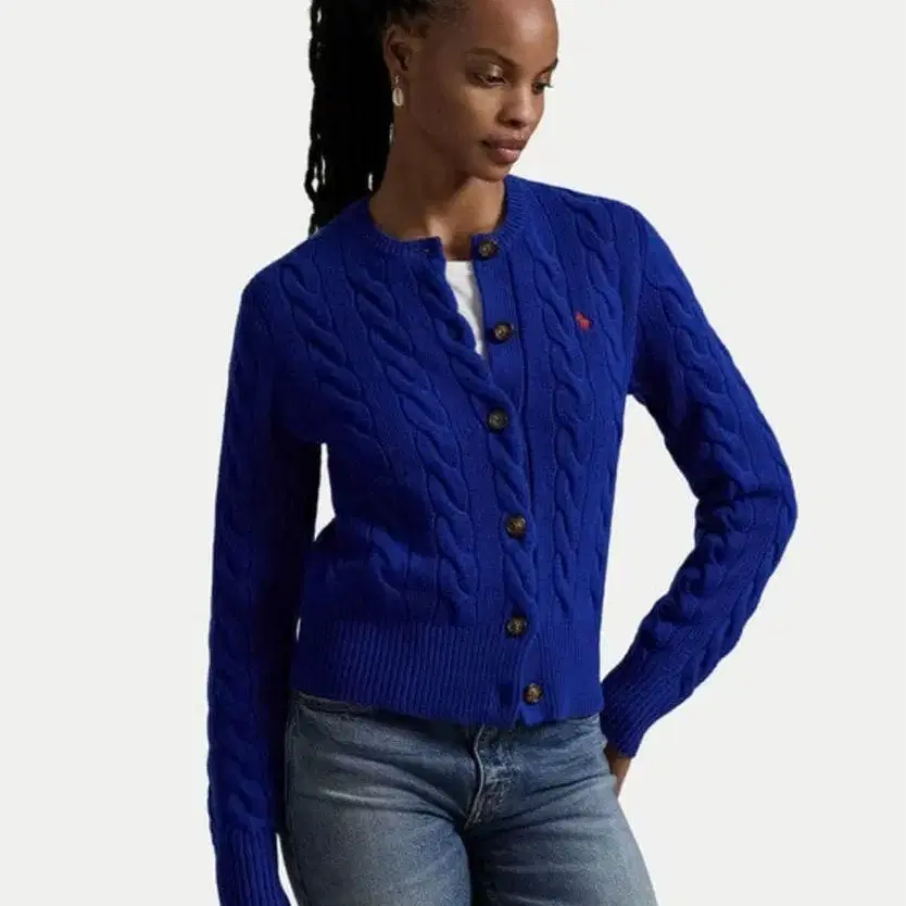 새상품 랄프 로렌 케이블 짜임 가디건 울 x 캐시미어