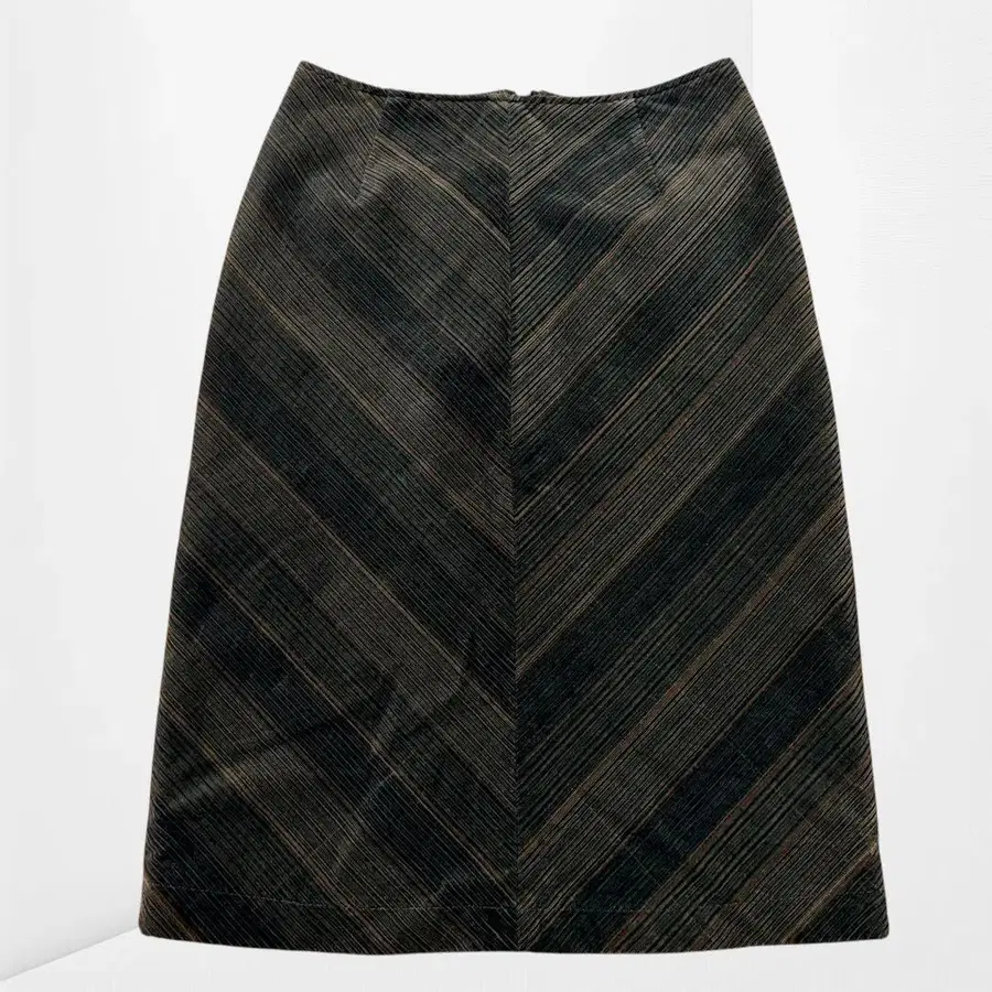 가는 골의 코듀로이 소재에, 사선 스트라이프 패턴이 인상적인 스커트.