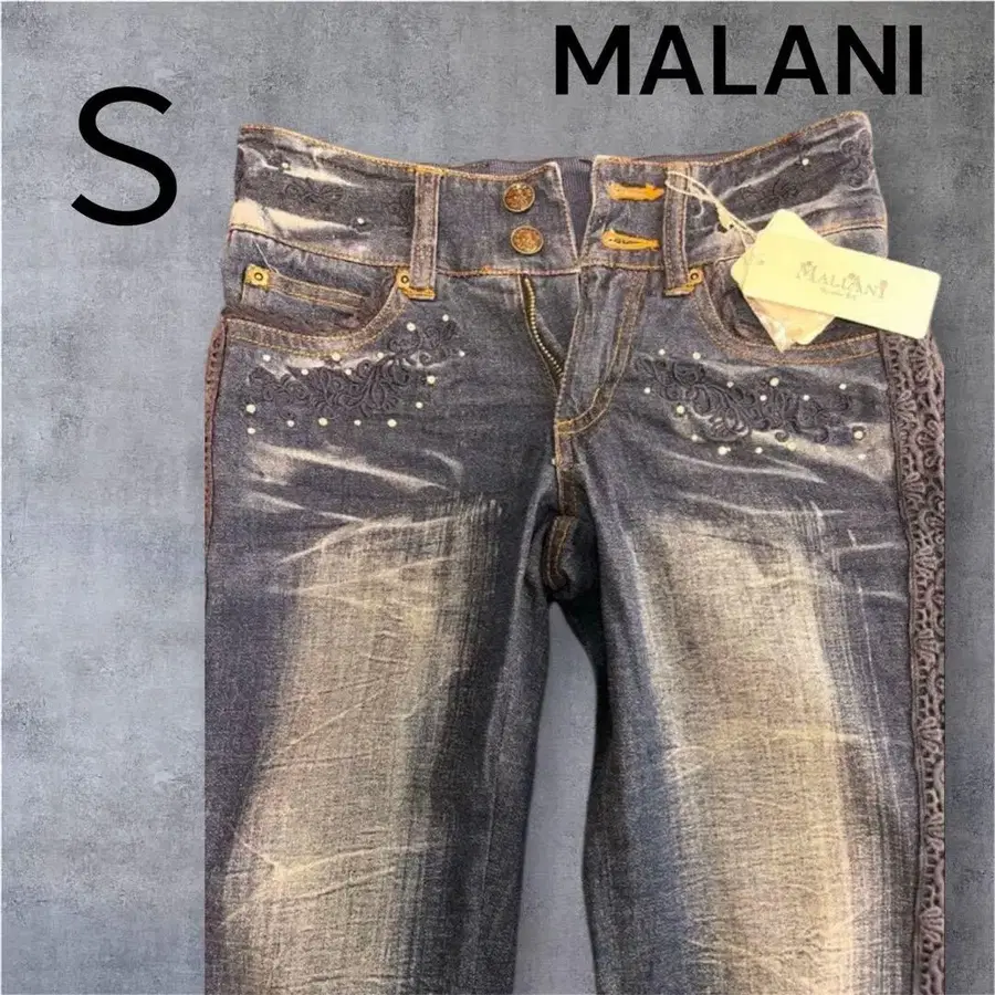 Y2K 자수 데님 팬츠 플레어 헤이세이 갸루 S