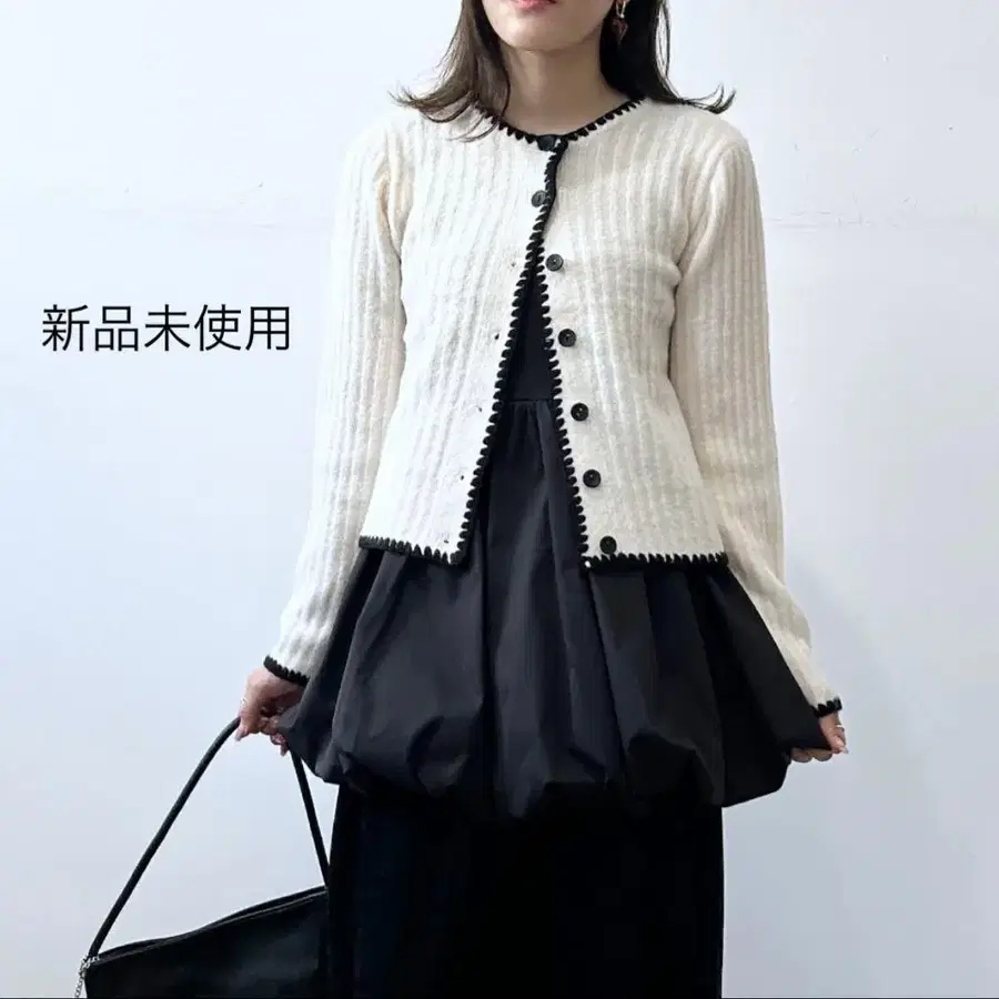 미사용 새상품 멜란지 스트레치 스티치 가디건 [ Ivory ]