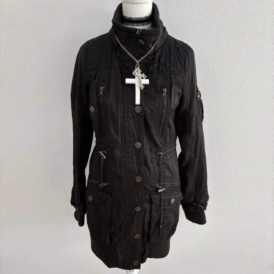 y2k 헤이세이 갸루 아우터 밀리터리 자켓 리브 후드 그런지 블랙