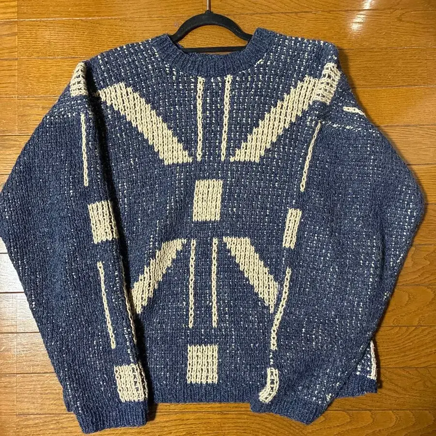 기하학 패턴 두꺼운 원단 니트 스웨터 네이비