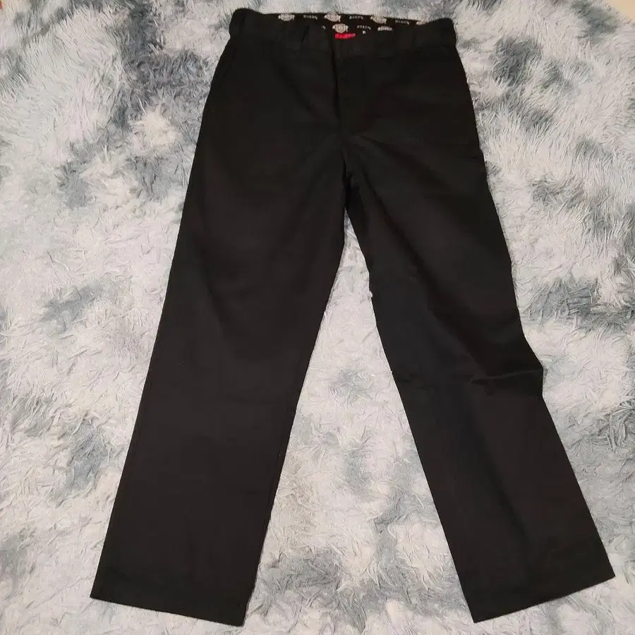 여유로운 핏 Dickies 블랙 스트레이트 팬츠 컬러풀 허리 밴딩 L