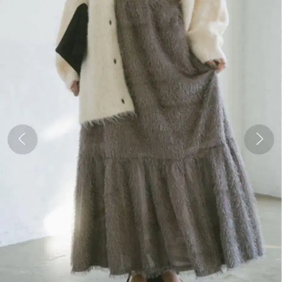 볼륨이 풍부한 호일 장식 페더 라메 페더 캐미 뷔스티에와 셋업 착용 가능. 깔끔하게 보이는 허리 둘레에 티어드 절개 아래는 볼륨이 풍부하여 스타일업. 전체 밴딩으로 입고 벗기 편안함, 착용감도 ◎ - Styling - 단품으로도 셋업으로도 빛나는 페더 스커트. 셋업으로 캐미 원피스처럼 살짝 드레시하게. 볼륨을 살려 컴팩트한 터틀넥과 매치하거나 스커트를 메인으로 T셔츠나 롱티셔츠로 포인트를 주고, 일부러 스니커즈로 포인트를 주는 것도 (*≧ ▽ ≦)b