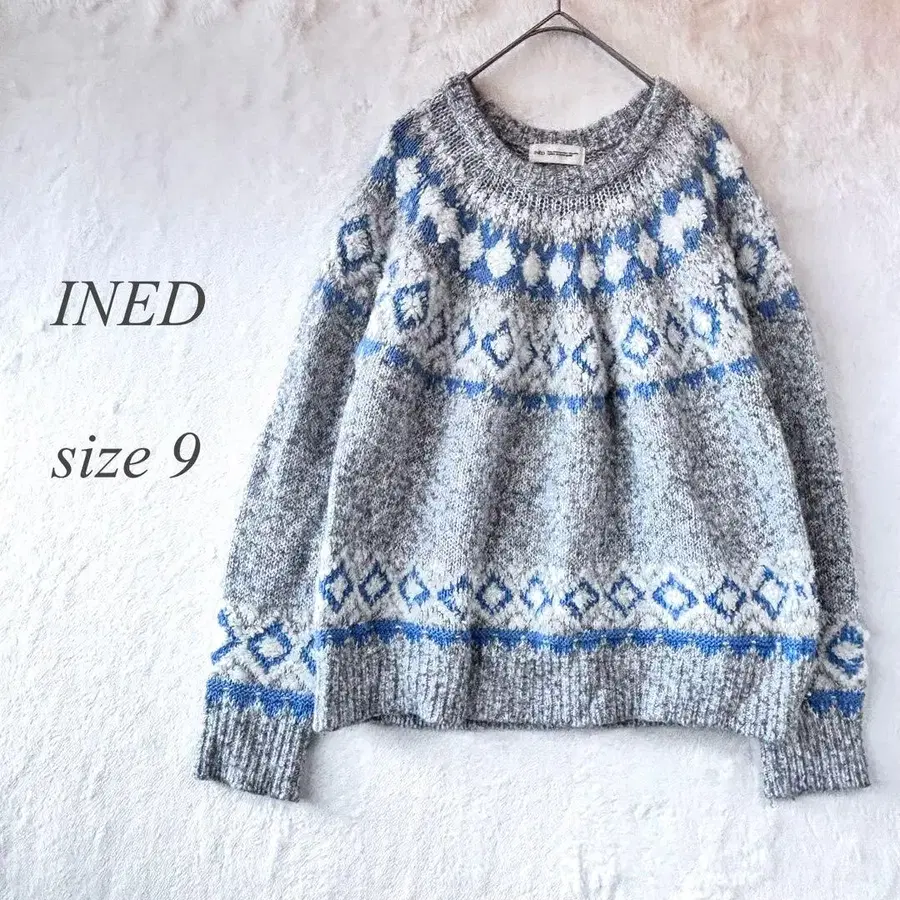 INED 긴팔 니트 스웨터 사이즈 9 페어아일 패턴 그레이 1205