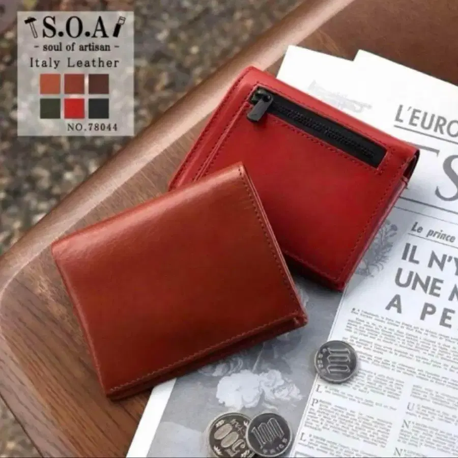 지갑 2단 남성용 극박경지갑 컴팩트 천연 가죽 이탈리아 가죽 지퍼 없음 경량 얇은 타입 소가죽 No.78044