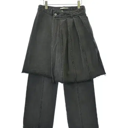 [ 실측치수(cm) ] 팬츠 허리:72cm, 팬츠 힙:85cm, 팬츠 인심:70cm, 팬츠 밑위:35cm, 팬츠 허벅지:62cm, 팬츠 밑단 둘레:48cm, 스커트 허리:78cm, 스커트 힙:100cm, 스커트 길이:55cm