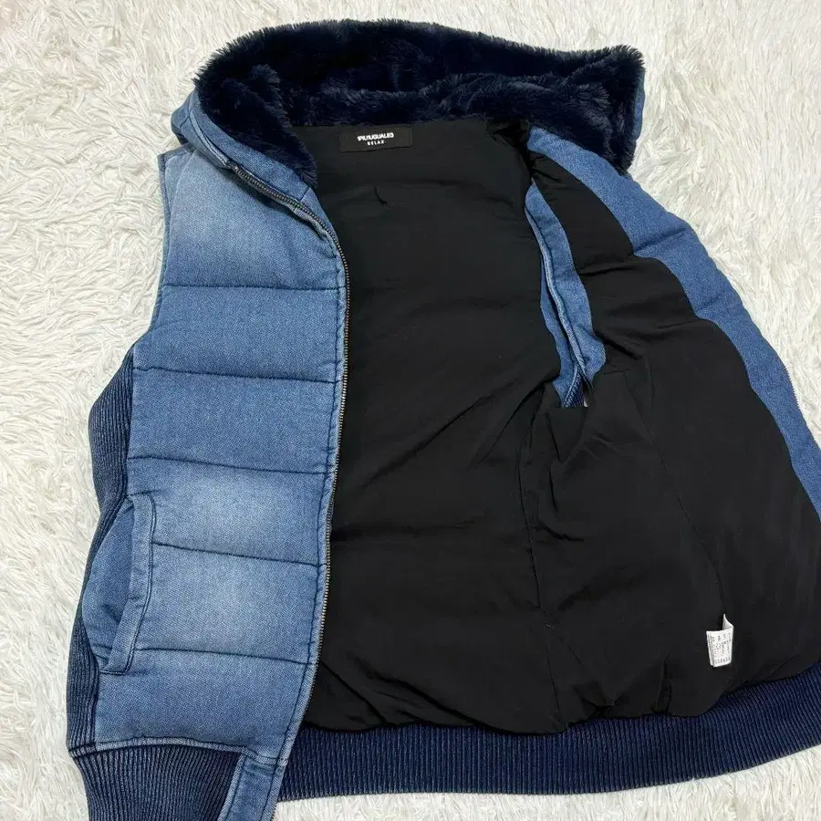 새상품급 우노피우노우과레토레 데님 다운 베스트 후드 퍼 포함