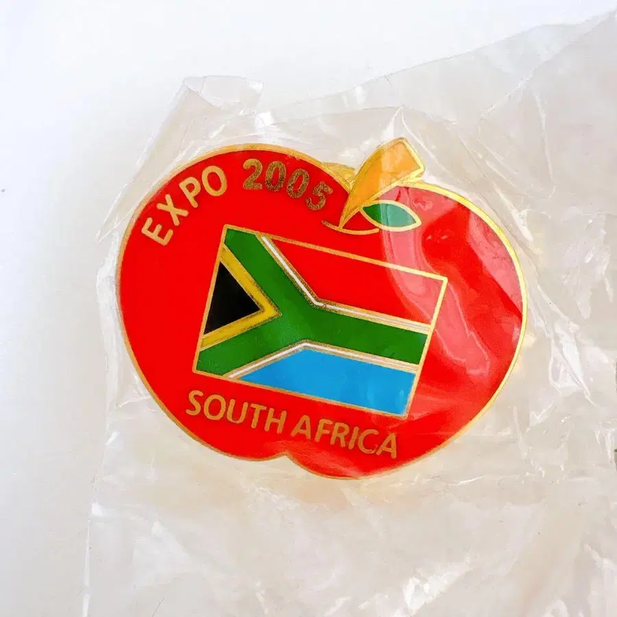 남아프리카 공화국 국기 디자인의 EXPO 2005 핀 배지.