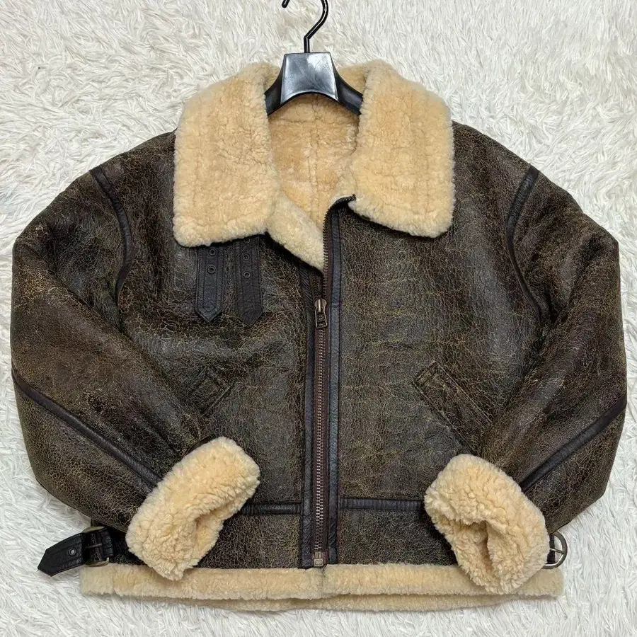 두툼한 리얼 무스탕 자켓 B-3 US 밀리터리 천연 가죽 브라운 양가죽