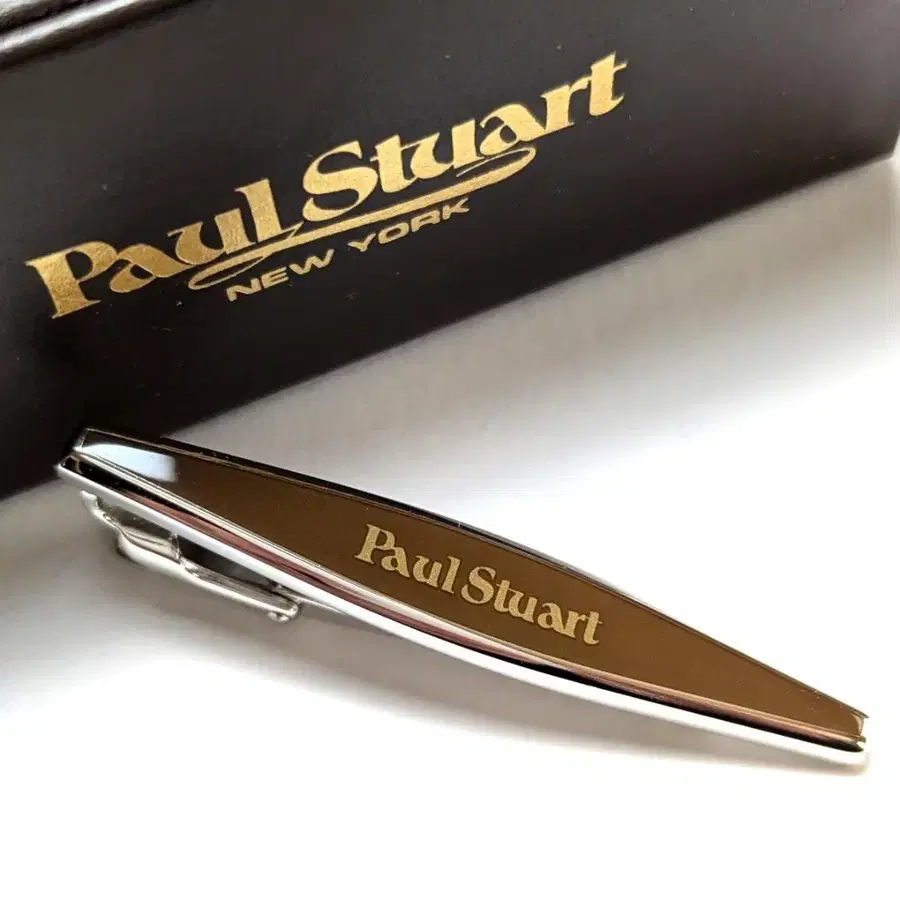 pst85 새상품 폴 스튜어트 넥타이핀 실버 x 브라운 브라운 로고