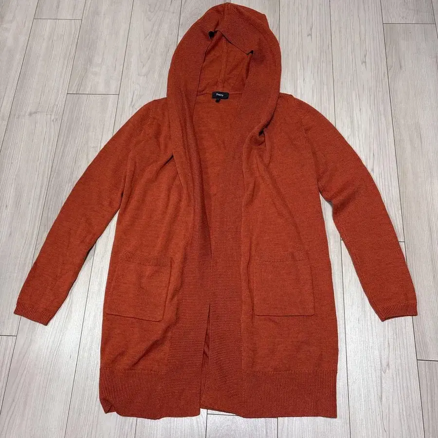 띠어리 후드 부착 니트 가디건 후드티 오렌지 남성용 S