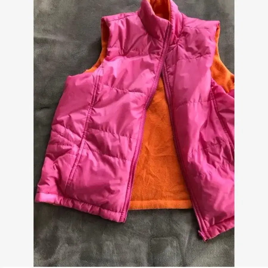 구제 의류 리버서블 충전솜 베스트 핑크 x 오렌지 플리스