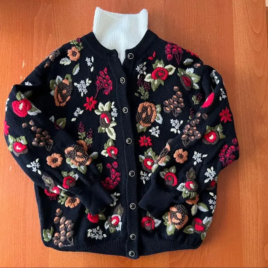 자수 울 니트 가디건 3D 자수 니트