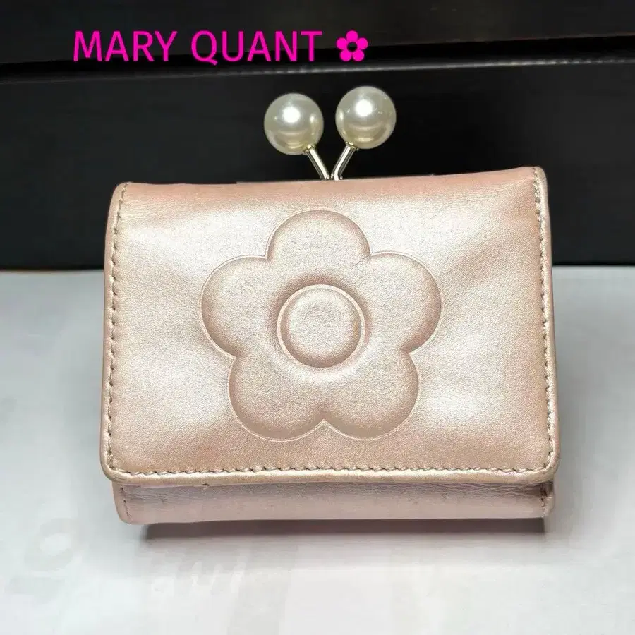 펄 장식이 고급스러운 마리콴트 3단 폴더형 지갑입니다.