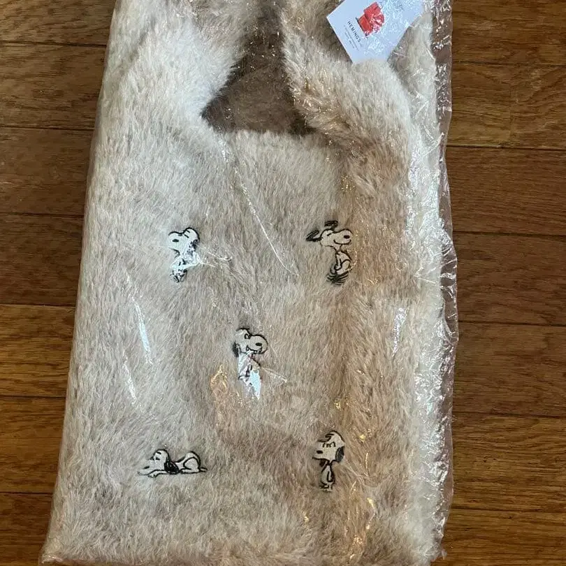 [ 미개봉 새상품 ] 스누피 자수 인조 모피 토트백 베이지 2025 신상
