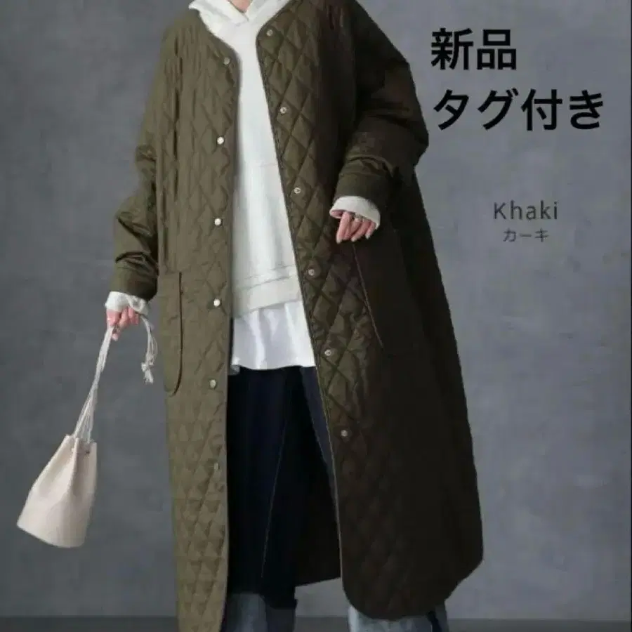 미사용 택 포함 HUG.U 하그유 퀼팅 자켓 롱 코트 올리브 카키