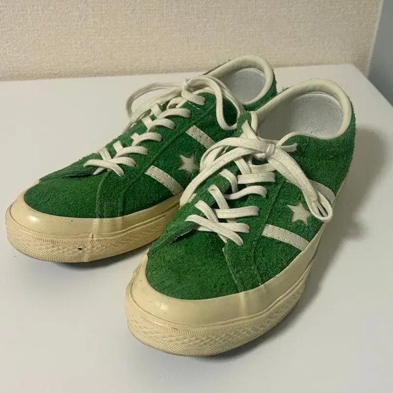 CONVERSE STAR&BARS US SUEDE 그린 가죽 26.5 컨버스 스니커즈 신발 부츠 스타&바즈의 [ U.S. ORIGINATOR ] 스펙 탑재 모델. 어퍼에는 털이 긴 스웨이드 소재를 채용. 얼룩덜룩한 슈레이스, 광택 가공을 더한 미색 테이프를 맞춰 데드스탁과 같은 분위기로 완성한 한 켤레입니다. U.S. ORIGINATOR SPEC 시간이 지나 노후화된 듯한 질감과 색을 연출하는 광택 가공을 더한 테이프 장시간 보관했던 듯한 얼룩덜룩한 색을 프린트한 6mm 폭 슈레이스 [ U.S. ORIGINATOR ] 프린트된 힐 라벨과 인솔 로고 쿠션성이 뛰어난 고밀도 우레탄 스펀지와 러버 스펀지의 인솔 [ 소재 ] 어퍼 : 스웨이드 아웃솔 : 러버 ■ 컬러 그린 화이트 ■ 사이즈 26.5 ■ 상태 약간의 얼룩, 흠집 등 사용감이 있지만, 밑창도 닳지 않아 계속해서 애용하실 수 있는 상품입니다. USED에 이해가 있는 분께 부탁드립니다. 상자 등 부속품은 없습니다.