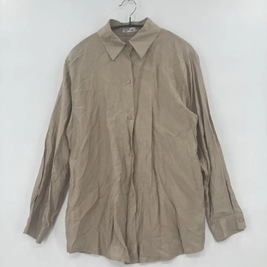 차분한 베이지 색상이 고급스러운 인상을 주는 긴팔 셔츠입니다. 폴리에스테르 100% 소재로, 부드럽고 가벼운 착용감이 특징입니다. 주름진 듯한 질감으로 자연스러운 분위기를 연출합니다.