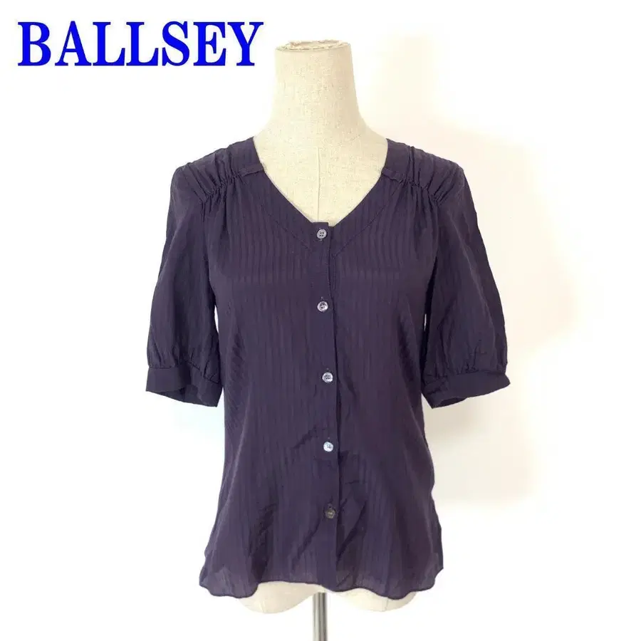 보르지 반팔 셔츠 블라우스 보라색 퍼플 큐프라 38 C4069